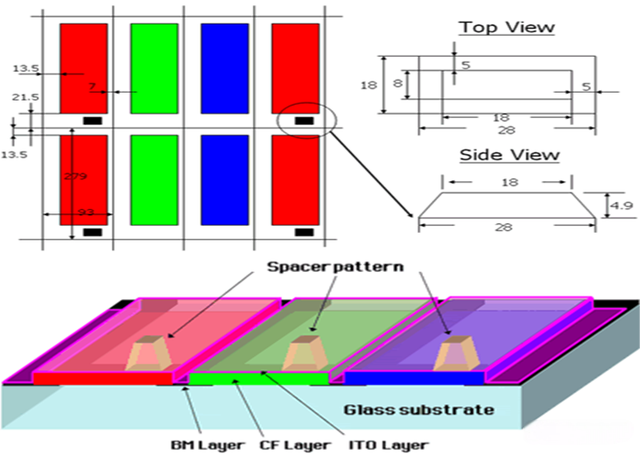 LCM / INCELL moduliai yra sudėtingai sudėti iš TFT stiklo, spalvų filtro (CF), viršutinio / apatinio poliarizatorių, skystųjų kristalų sluoksnių ir foninio apšvietimo sistemų. Spalvų pokytis atsiranda dėl nedidelių svyravimų trijose svarbiose srityse: