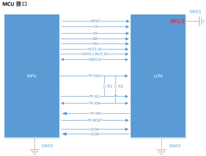 Vidutinio ir mažo greičio programose, pvz., pramoniniuose prietaisuose ir buitinės technikos plokštėse, MCU sąsaja yra populiari dėl lanksčios 8/16/18 bitų režimų palaikymo. Labai svarbu tiksliai valdyti tokius signalus kaip CS, WR ir RD. Dėl to LCD modulio foninio apšvietimo sistemai keliami aukštesni reikalavimai: ji turi turėti puikią anti-interferenciją ir stabilumą. Tai garantuoja nuolatinį, nemirksintį TFT ekrano foninio apšvietimo ryškumą įvairių signalų perėjimų metu, užtikrinant nuolat patikimą vaizdo rodymą.