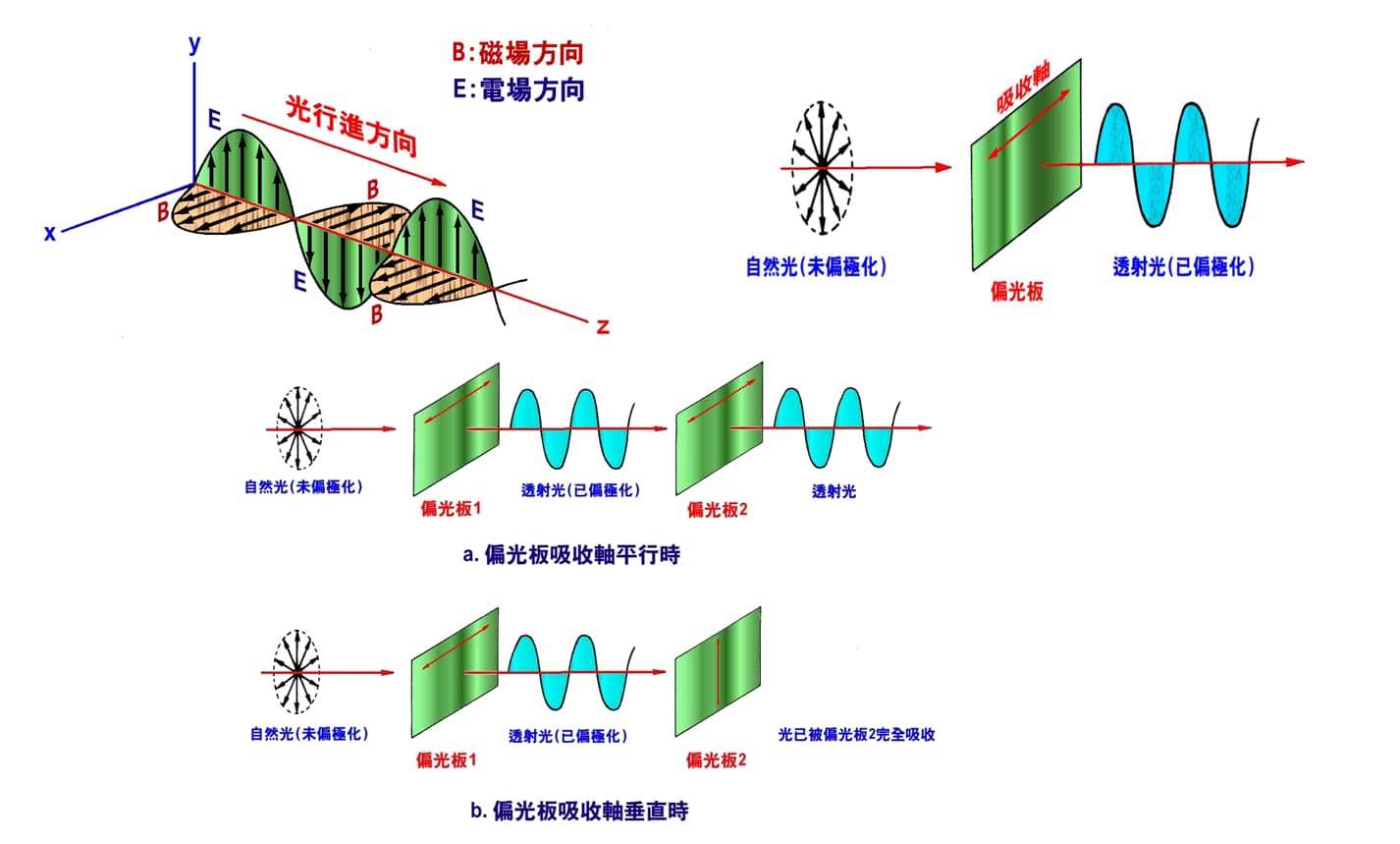 Įvesties filtravimas (apatinis poliarizatorius): chaotišką, nepoliarizuotą natūralią šviesą iš foninio apšvietimo paverčia poliarizuota šviesa su vienoda vibracijos kryptimi.