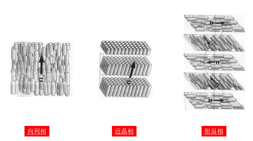 Šių struktūrų susidarymas priklauso nuo specialios skystųjų kristalų molekulių konstrukcijos: jos paprastai yra lazdelės formos, kurių ilgis gerokai viršija jų plotį (pvz., 2 nm ir 0,5 nm), turi standžią molekulinę ilgąją ašį, o galuose yra polinės arba poliarizuojamos grupės. Ši anizotropinė molekulinė struktūra yra pagrindinė priežastis, kodėl skystieji kristalai gali reaguoti į išorinius elektrinius laukus ir pakeisti jų optines savybes.