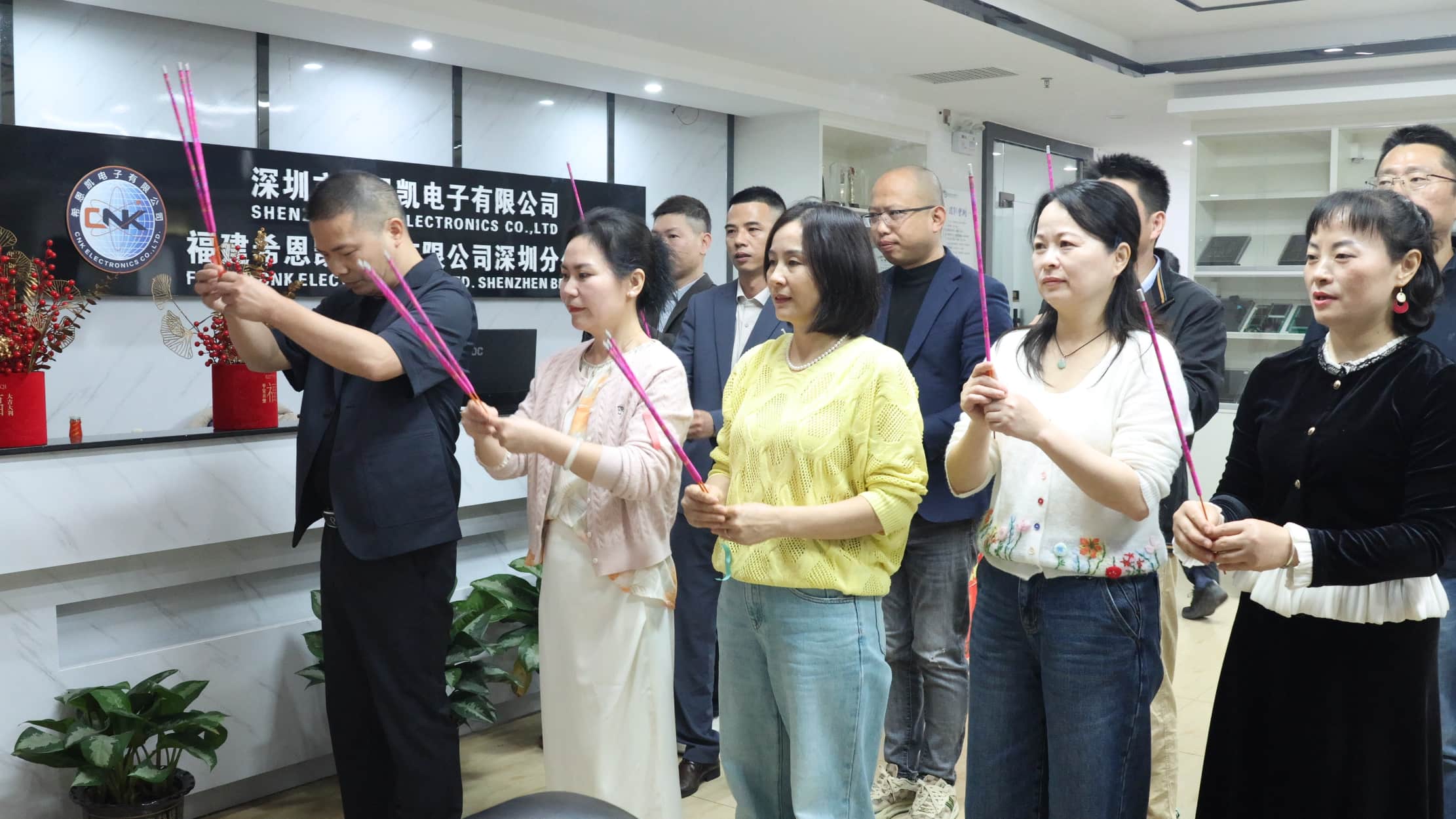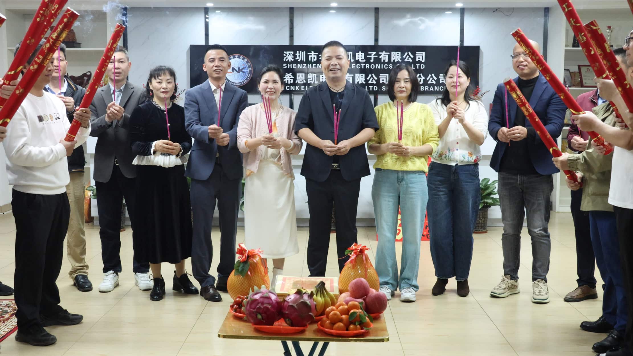 Auštant aukščiausioji įmonės vadovybė susirinko ir visus darbuotojus surengė iškilminga atidarymo ceremonija. Nuo rašomųjų stalų kilo smilkalų dūmai, o aukų buvo gausu. Tai ne tik išreiškė mūsų pagarbą dangui ir žemei, bet ir nuoširdžiai linkėjo visų darbuotojų, kad metai būtų sėkmingi su palankiu oru ir sklandžia veikla. Tarp smilkalų vadovai su dideliu atsidavimu smilkė, melsdami palaiminimo ir sėkmės įmonės didiesiems planams naujaisiais metais.
